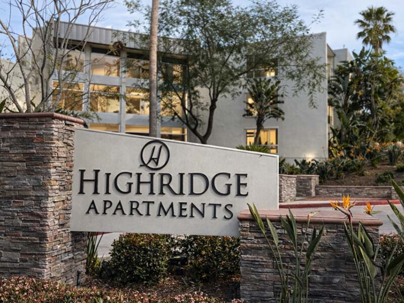 Apartment Exterior and Monument Sign | Highridge Apartments